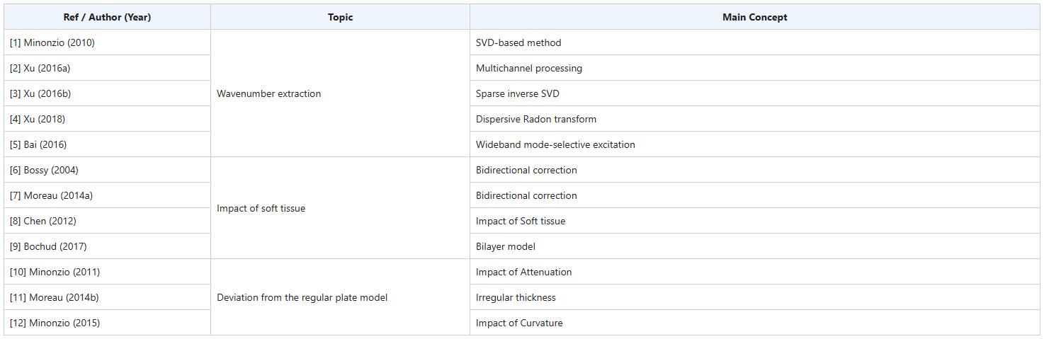 [2] Xu K., Ta D., Cassereau D., Hu B., Wang W., Laugier P., Minonzio J.-G. Multichannel processing for dispersion curves extraction of ultrasonic axial-transmission signals. Journal of the Acoustical Society of America, 2016. DOI: 10.1121/1.4962491